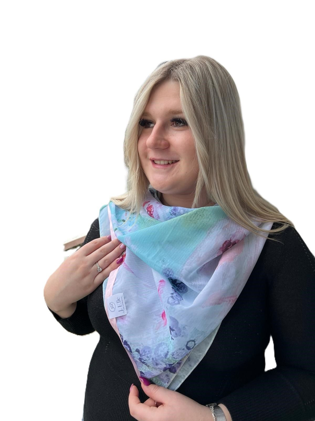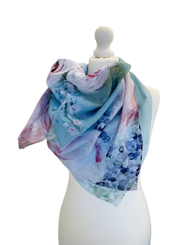 Ajoutez une touche de sophistication à votre style avec notre foulard en voile de 100x100 cm, orné de mes magnifiques peintures fleuries. Chaque foulard est une pièce unique, conçue pour apporter une note artistique à toutes vos tenues.