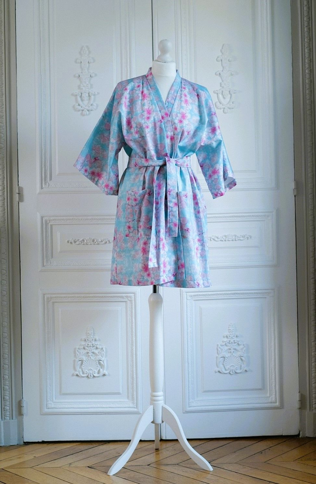 Découvrez l'élégance intemporelle de notre kimono en satin de coton, orné de mes peintures fleuries inspirées du style impressionniste. Conçu pour être porté aussi bien à l'intérieur en déshabillé qu'à l'extérieur, ce kimono est la pièce idéale pour ajouter une touche artistique et sophistiquée à votre garde-robe.