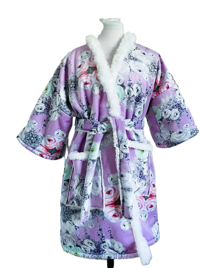 Enveloppez-vous de confort et de chaleur avec notre kimono en velours somptueux, doublé d’un intérieur fourré ultra-doux. Imprimé de mes motifs floraux, ce peignoir est bordé d'une fourrure tout le long du col, apportant une élégance sophistiquée et un confort incomparable pour les journées et soirées d’hiver.