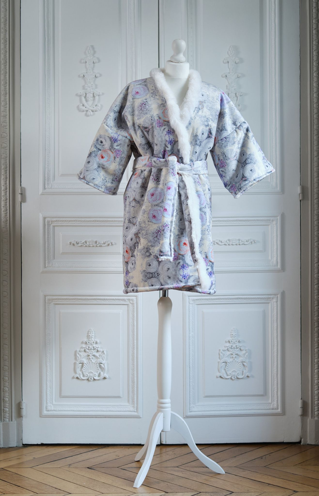 Enveloppez-vous de confort et de chaleur avec notre kimono en velours somptueux, doublé d’un intérieur fourré ultra-doux. Imprimé de mes motifs floraux, ce peignoir est bordé d'une fourrure tout le long du col, apportant une élégance sophistiquée et un confort incomparable pour les journées et soirées d’hiver.