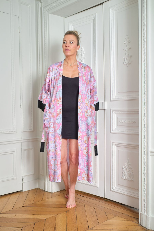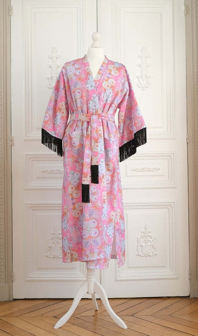 Portez ce Kimono en 100% satin de coton comme déshabillé ou avec un jeans pour un style très fashion ! Taille unique.