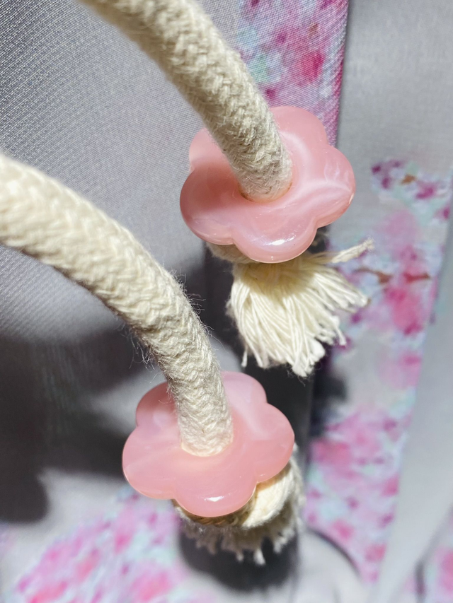 - Ceinture : Cordon ajustable pour définir la taille, fini de chaque côté par de délicates perles en forme de fleurs, qui ajoutent une note originale et féminine.