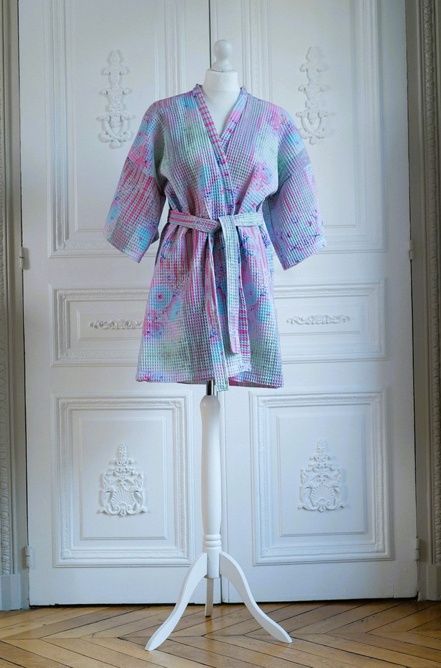 - Polyvalence : Idéal comme peignoir pour les matins paresseux ou comme sortie de bain colorée, ce kimono est votre allié détente et style au quotidien.