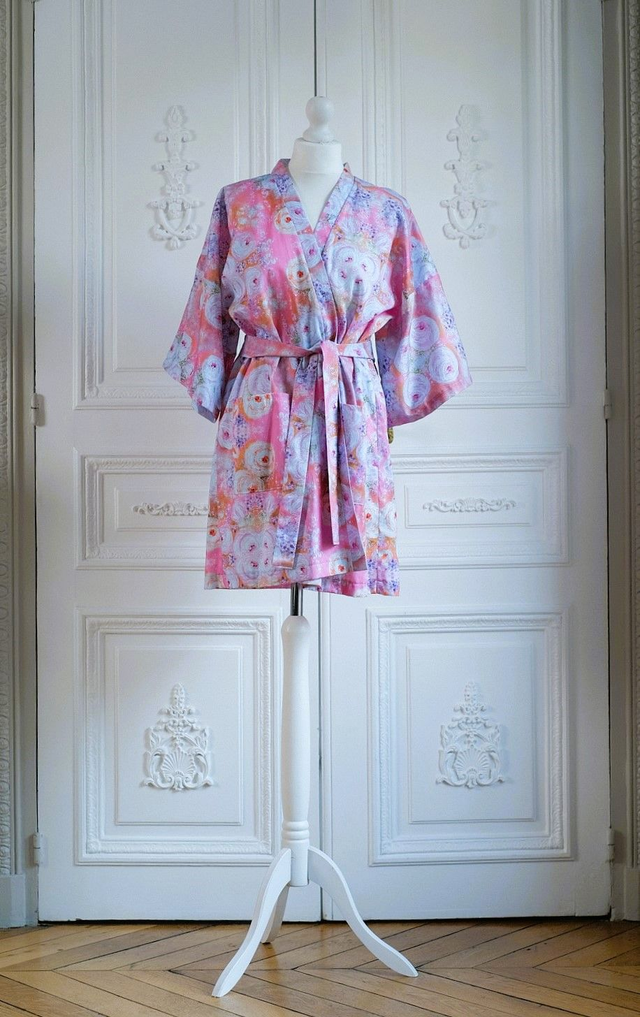 Découvrez l'élégance intemporelle de notre kimono en satin de coton, orné de mes peintures fleuries inspirées du style impressionniste. Conçu pour être porté aussi bien à l'intérieur en déshabillé qu'à l'extérieur, ce kimono est la pièce idéale pour ajouter une touche artistique et sophistiquée à votre garde-robe.